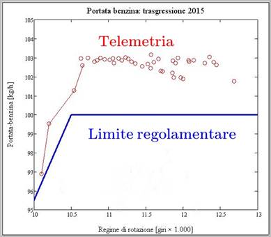 Dopo la natura, ecco anche la portata del carburante, con un limite massimo di 100 kg/h al disopra dei 10.500 giri, che viene regolarmente superato.